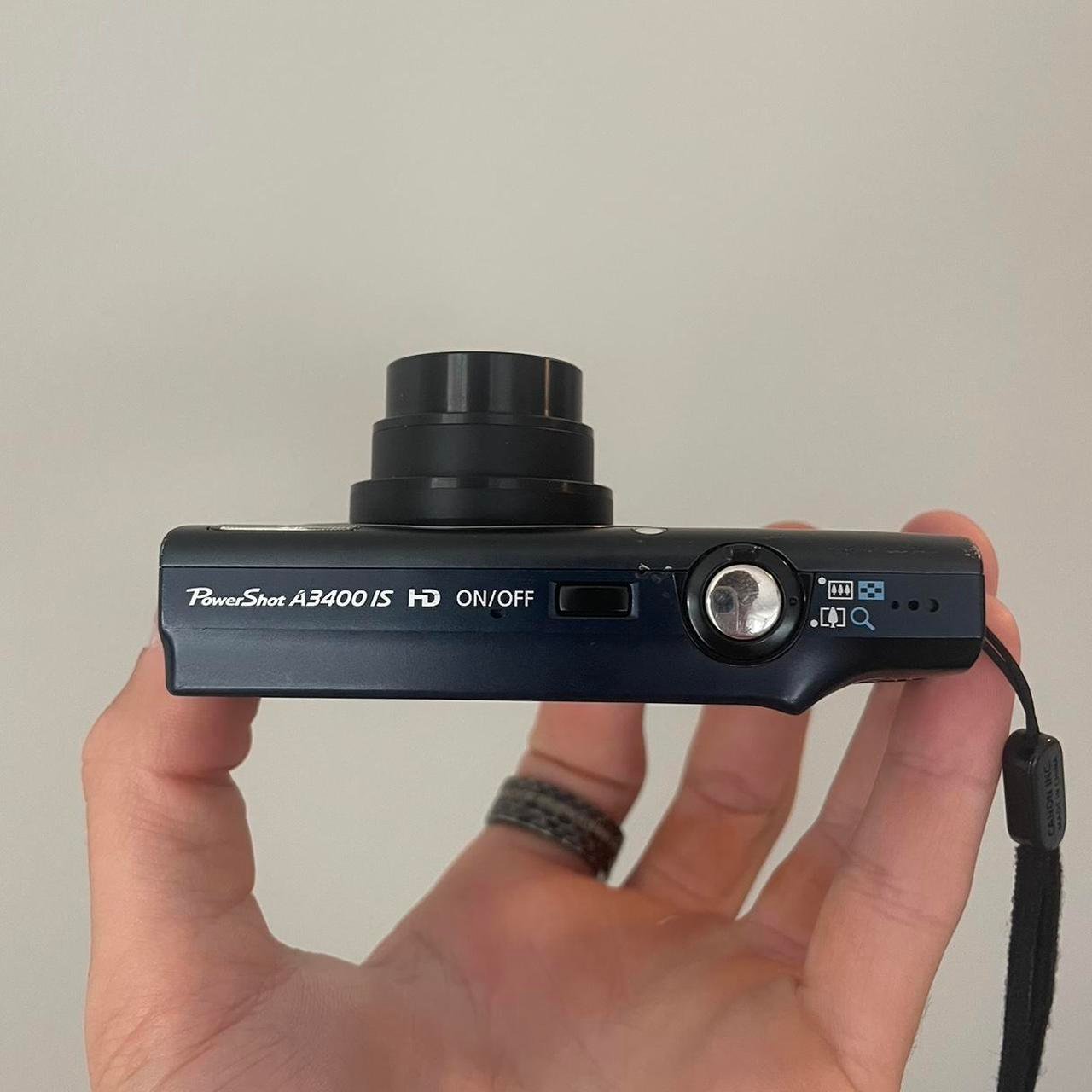 Canon a3400 digital camera In good condition Works great, can’t really tell in the photos but its a nice navy color Takes some great photos, and amazing videos -Has 16 megapixels -5x optical zoom -full high definition filming -and a bunch of other features Comes with battery and 8gb sd card Message me if you have any questionsπŸ€™ ccd canon ixy ixus elph sd powershot nikon coolpix sony cybershot dsc minolta kodak fujifilm olympus panasonic lumix digital camera digicam compact samsung A14
